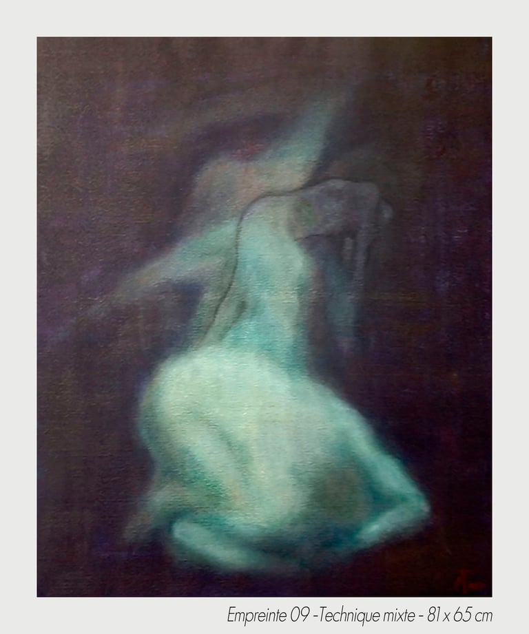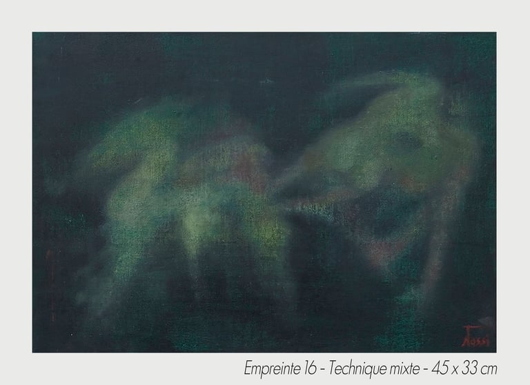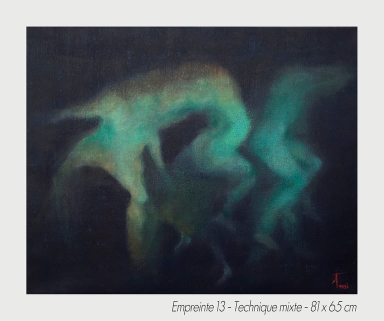 Captured on canvas through a plastic art delivered by the impregnation of the inapparent, the artistic creation’s process gives material to be sticked on canvas, whithout being definitive.