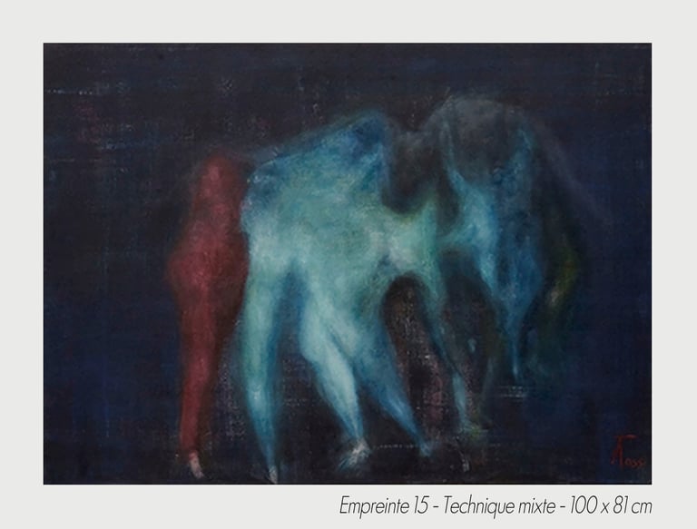 Would these faces would like to join while keeping their individuality? What stands out from these paintings is a genesis, the birth of a path. This gives to imagine by imprint, the future life of these beings, close to the archetype.